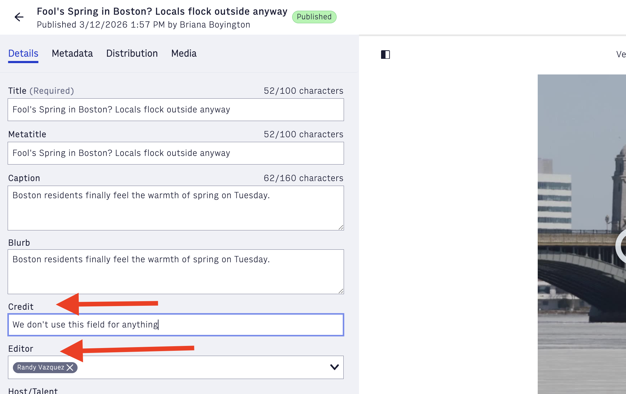 We have an issue right now where our video editors get confused as to what field they are supposed to use to populate their credits on our site. We want them to use the "Editor" field, but sometimes they use "Credit." Sometimes they use "Name." Sometimes they get overwhelmed and don't enter anything at all. It would be great if we could just hide the fields we aren't using.