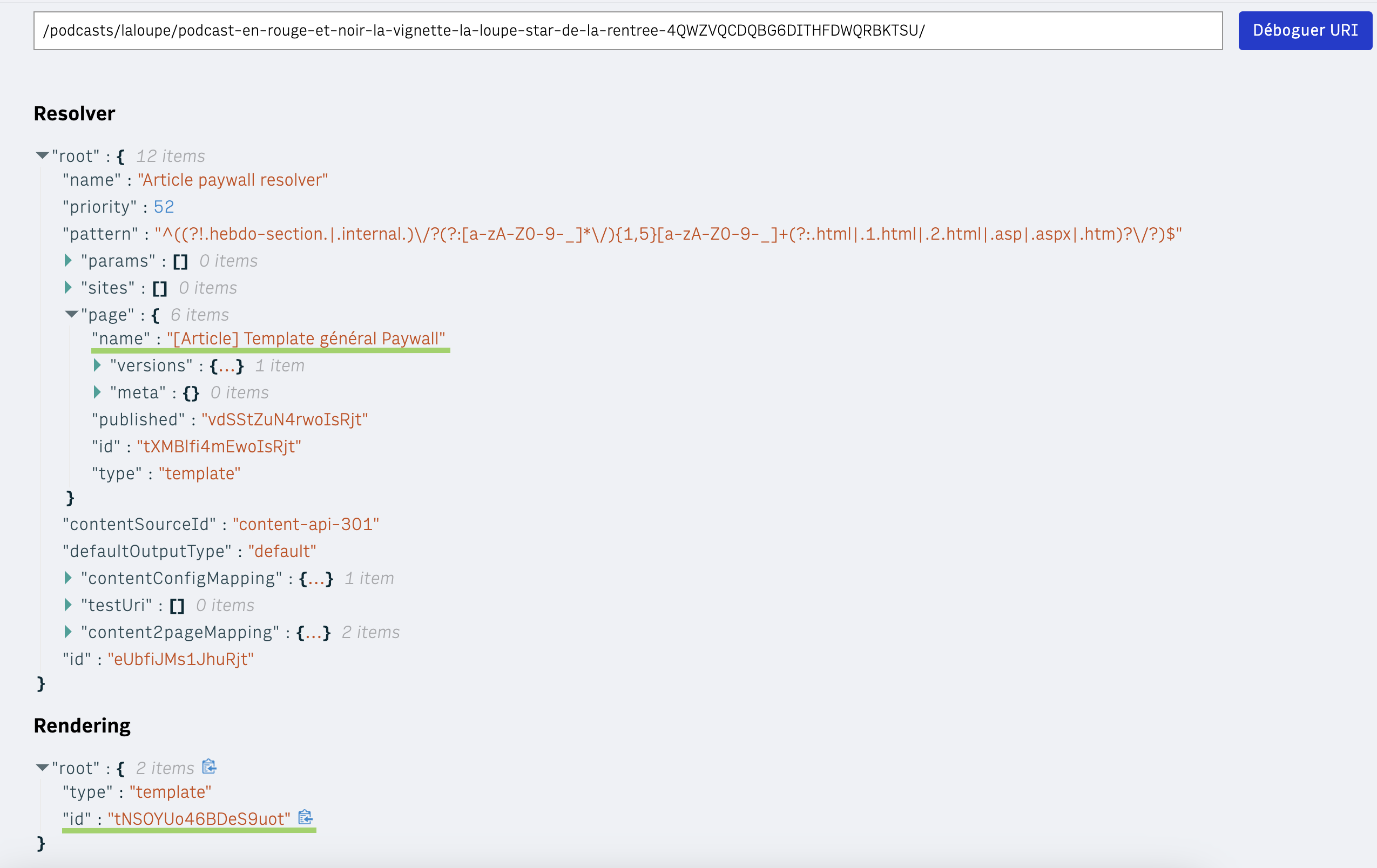 Thanks to the resolver debugger, in the Resolver subsection we can see the id AND the name of the default template associated with the resolver.